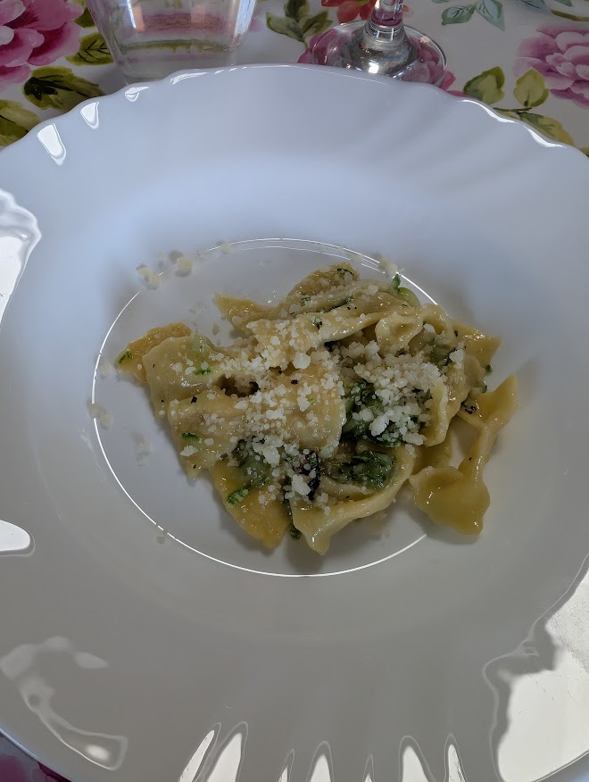 Nebenbei machten wir frischen Teig und lernten drei Formen: Fusilli, Tortelloni, Tagliatelle. Am Ende saĂźen wir zusammen, mit rotem Wein und gutem Essen, lachten und redeten wie alte Bekannte. Es muss nicht fĂĽr ewig sein, um wertvoll zu sein.