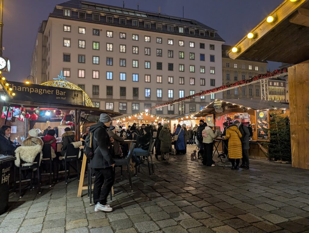 Auf der Freyung steht der Altwiener Christkindlmarkt für Programm, Kunsthandwerk und dieses „altwienerische“ Setting. Altwiener Christkindlmarkt+1